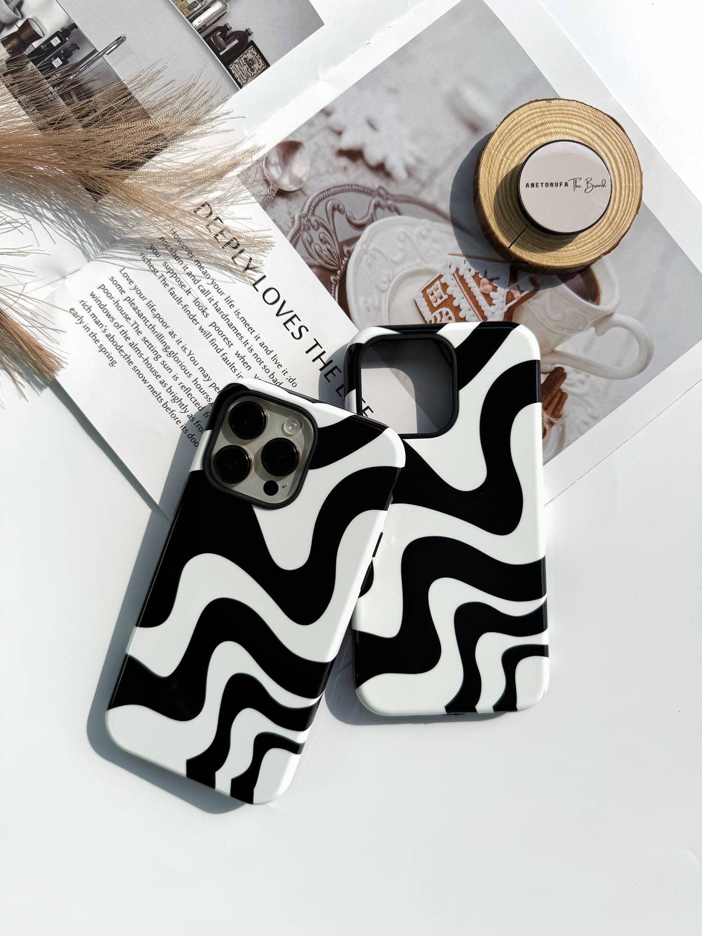 "Elevate your phone’s look with this chic 2-in-1 monochrome waves case, combining modern design and robust protection."