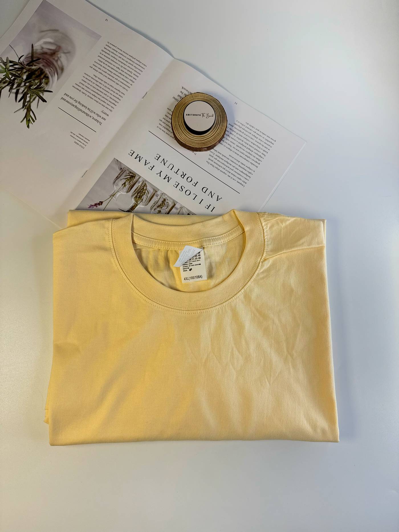 "Add a soft, warm hue to your wardrobe with our Apricot Plain Cotton T-Shirt. Made from comfortable, breathable cotton, this tee offers a relaxed fit and a smooth feel against your skin. The subtle apricot shade provides a gentle pop of color, making it a versatile and stylish addition to your everyday look."