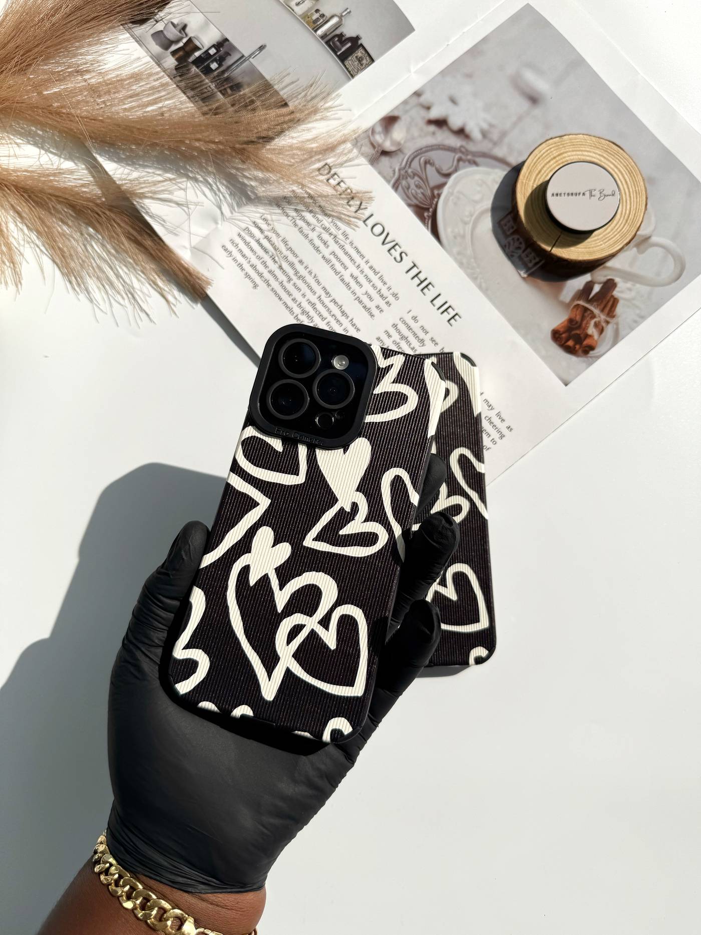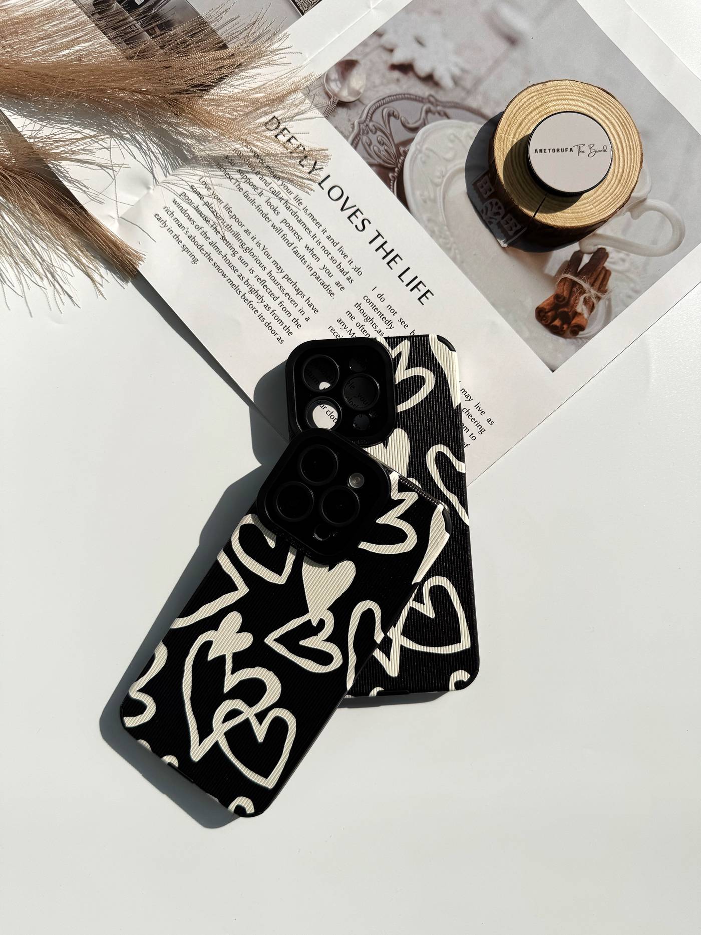 "Show your love with this trendy black and white heart phone case, combining style and protection in one eye-catching design."