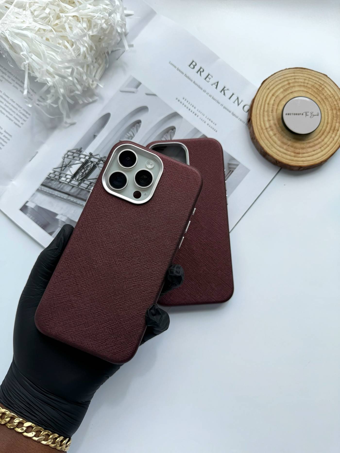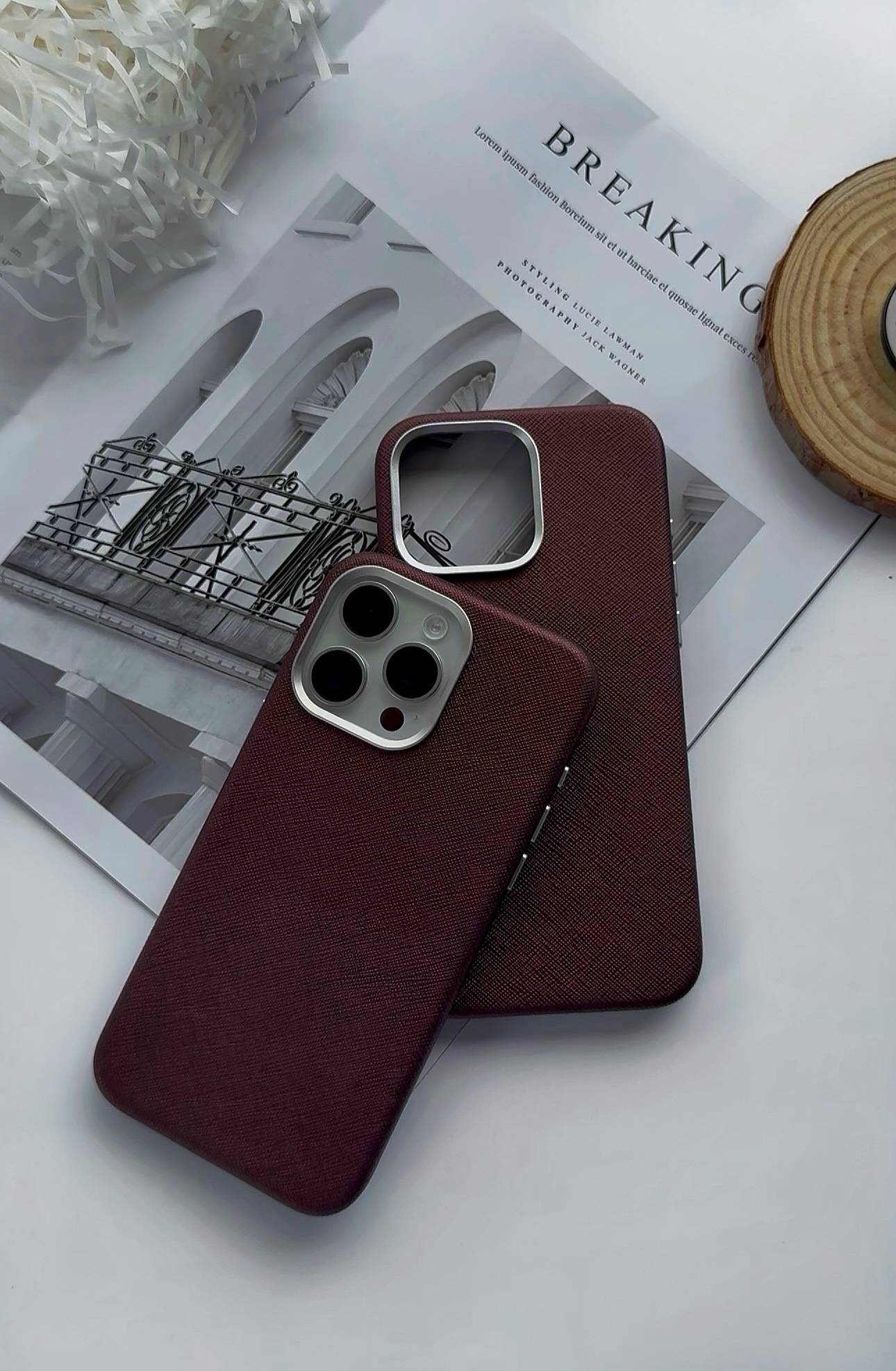 The Claret Textured Leather MagSafe Phone Case features a rich textured finish, precise magnetic alignment, and durable protection — combining elegance with everyday functionality.