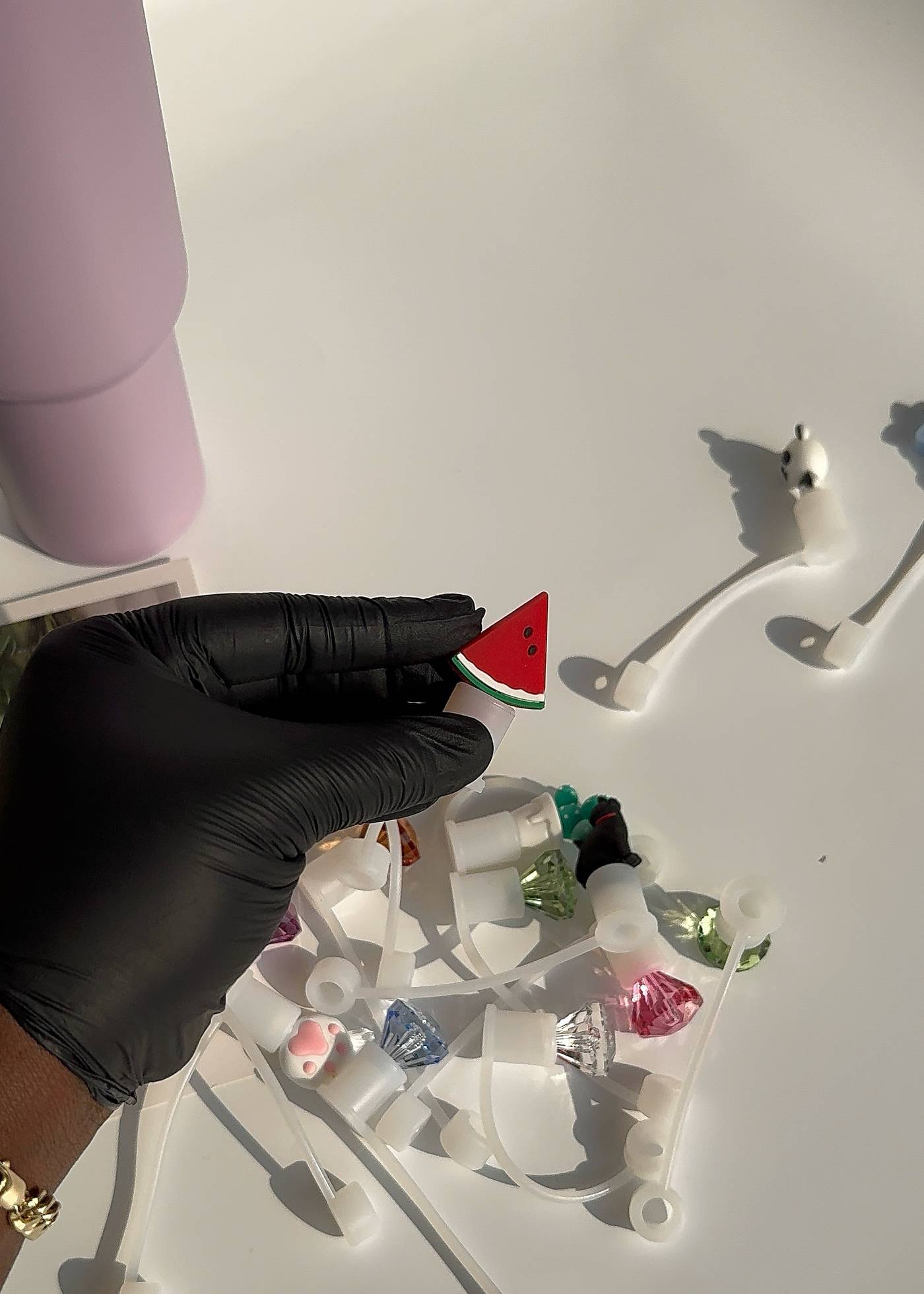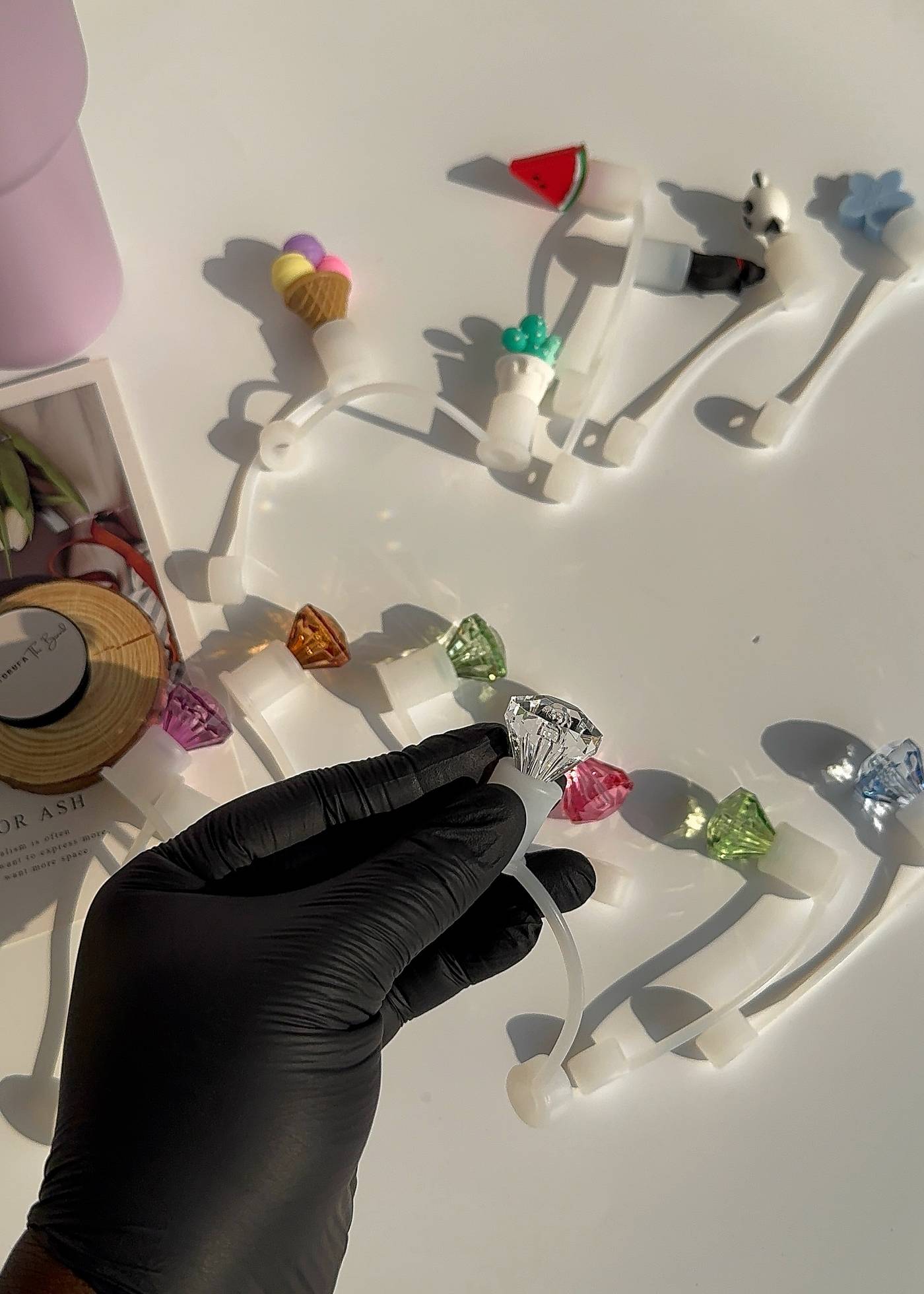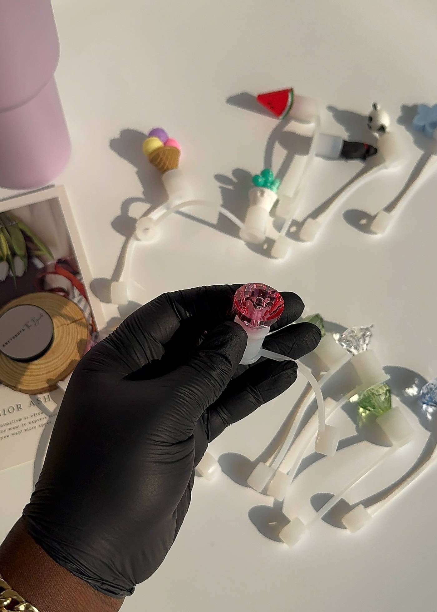 "Enhance your tumbler with this straw topper, designed to prevent spills while adding a fun, functional touch to your thermal tumbler."