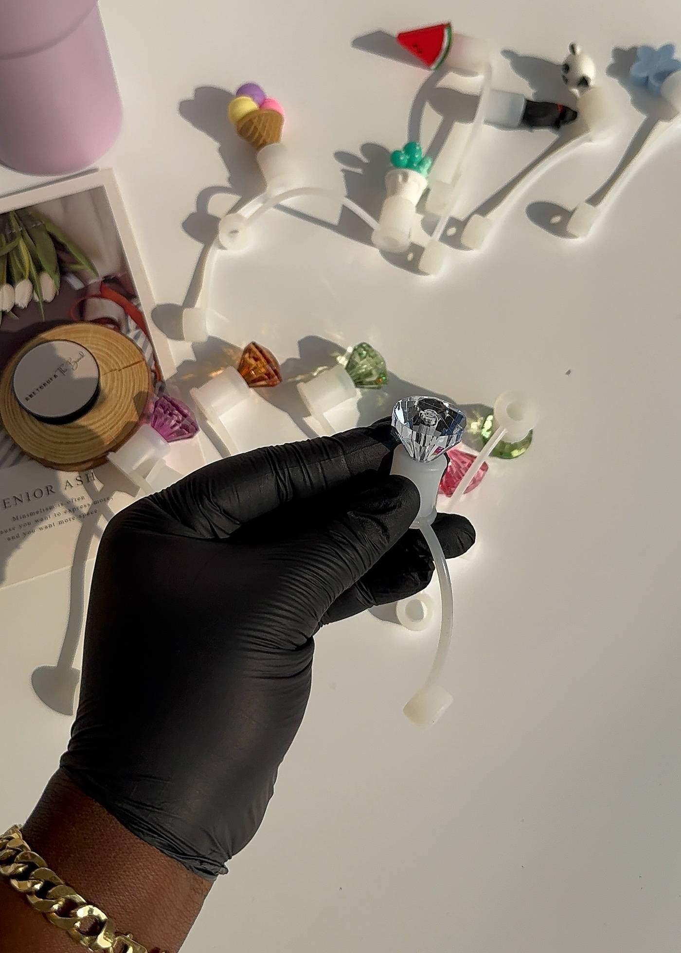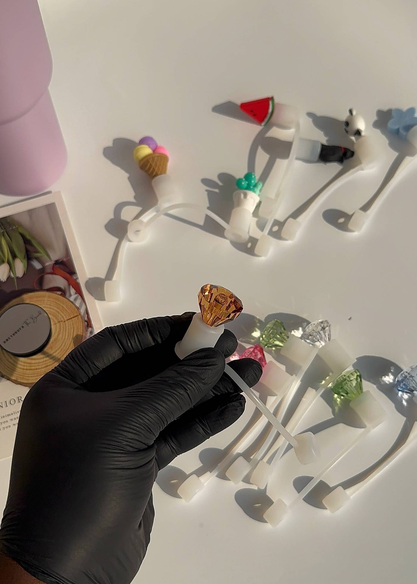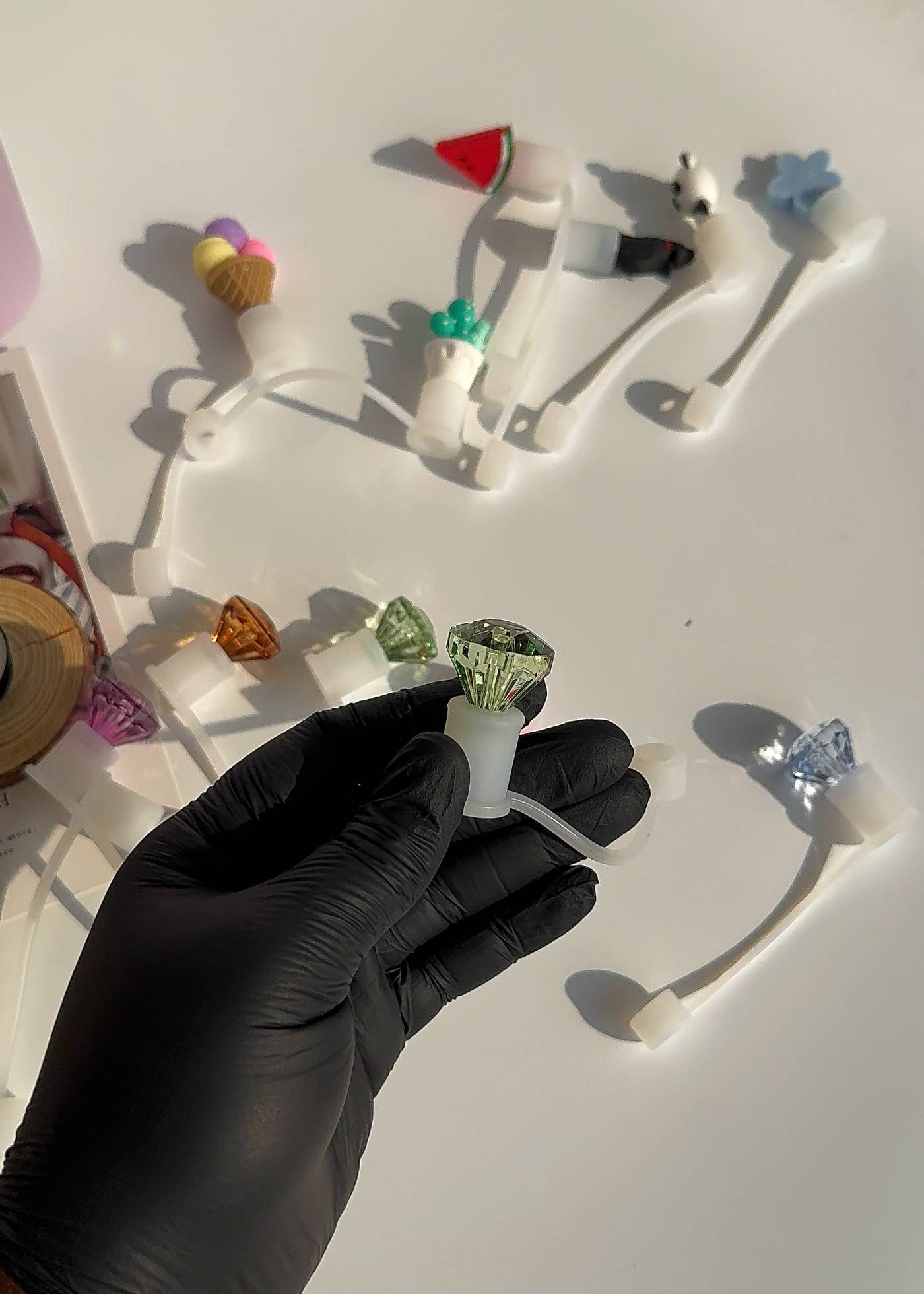"Enhance your tumbler with this straw topper, designed to prevent spills while adding a fun, functional touch to your thermal tumbler."