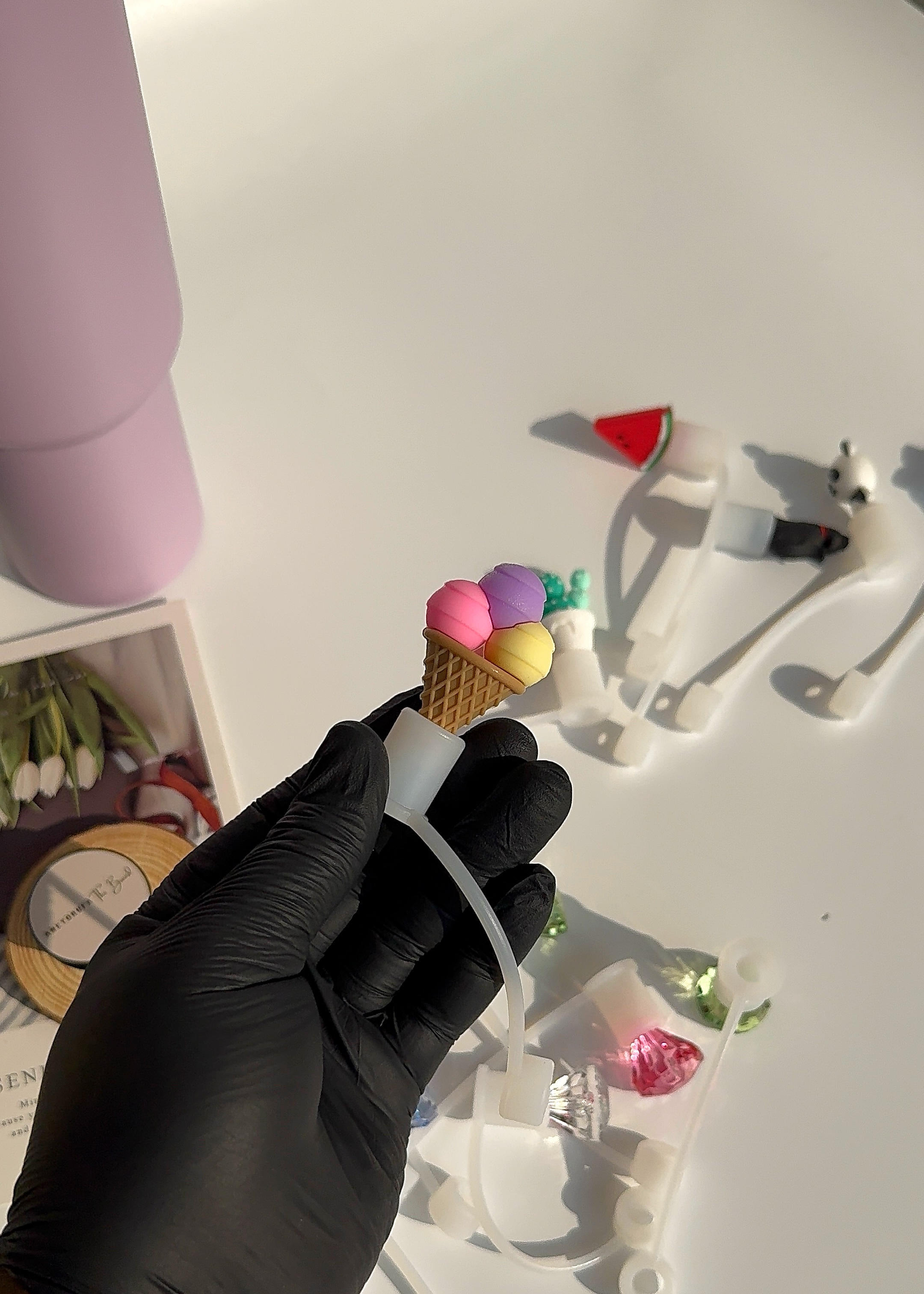 "Enhance your tumbler with this straw topper, designed to prevent spills while adding a fun, functional touch to your thermal tumbler."